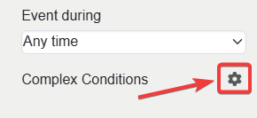 Για να ξεκινήσετε τη ρύθμιση των επιλογών σας για τις Σύνθετες Συνθήκες, πατήστε στο εικονίδιο Ρυθμίσεων δίπλα στις Σύνθετες Συνθήκες στον πίνακα φίλτρων ή —